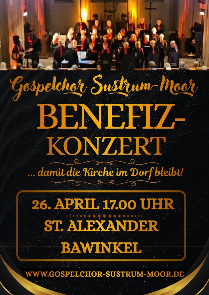 Das Benefizkonzert findet statt am Sonntag, den 26.04.2026 um 17.00 Uhr in der Kirche St. Alexander in Bawinkel.